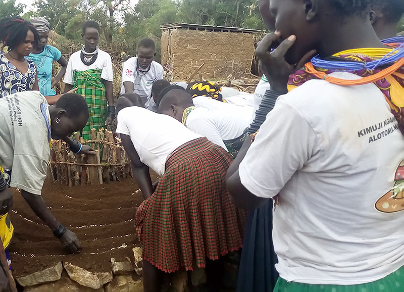 AfrII nutritionists on the Livestock for Livelihoods (L4L) Project engage in training over 400 Lead Mothers (LMs), Village Health Teams (VHTs) and Field Agents in Kotido, Napak, Moroto and Nakapiripirit districts in the Karamoja sub region on how to set up a kitchen garden using locally available materials. The highly interactive and practical training involves setting up of a demonstration garden in one of the LMs home in order to promote consumption of vegetables at household level. The groups will also be supported with assorted seeds and garden equipment. At least 500 kitchen gardens are expected to be set up after the training.